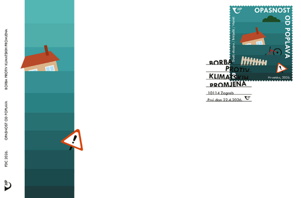 Hrvatska pošta već više godina u povodu Dana planeta Zemlje, 22. travnja izdaje seriju prigodnih maraka „Borba protiv klimatskih promjena“. Prošlogodišnjim izdanjem skrenuta je pozornost na globalnu sušu i njezine katastrofalne posljedice, a ove je godine motiv marke u ovoj seriji suprotnost suši - poplava.Autorica novog izdanja je studentica Gita Brkljačić, koja je marku oblikovala pod mentorstvom izv. prof. Tomislava Vlainića. Izdanje je realizirano u sklopu kolegija „Projektiranje - Vizualne komunikacije 3“ na drugoj godini Prijediplomskog studija dizajna odsjeka Studij dizajna na Arhitektonskom fakultetu Sveučilišta u Zagrebu. Novo izdanje prati i prigodna omotnica prvog dana (FDC).