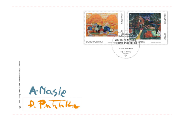 Hrvatska pošta će 24. studenog pustiti u optjecaj novo prigodno izdanje poštanskih maraka iz serije „Hrvatska likovna umjetnost“. Riječ je o dvjema markama, obje nominalne vrijednosti 0,72 eura, koje donose motive iz fundusa Umjetničke galerije Dubrovnik. Autor grafičkog oblikovanja je dizajner Orsat Franković iz Zagreba, dok su korištene fotografije djelo Miha Skvrce, fotografa iz Dubrovnika. Naklada iznosi 25.000 primjeraka po motivu, a marke su izdane u arčićima od šest maraka. Uz izdanje je objavljena i omotnica prvog dana (FDC).Na markama su prikazana dva značajna djela hrvatske likovne baštine: Antun Masle, Orašac, oko 1944., ulje na platnu, 39,50 × 47,50 cm, Umjetnička galerija Dubrovnik te Đuro Pulitika, Proljetni pejzaž, 1974., ulje na platnu, 59,50 × 79,20 cm, Umjetnička galerija Dubrovnik.